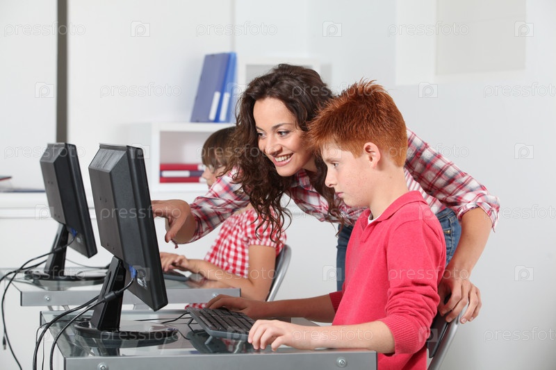 Учителя и дети учатся пользоваться компьютером