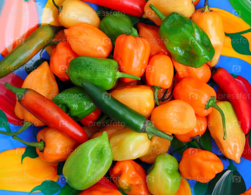 Чили Habanero и Serrano горячий мексиканский перец красочное блюдо