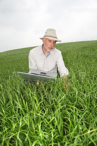 Фермер, изучения культур с портативного компьютера