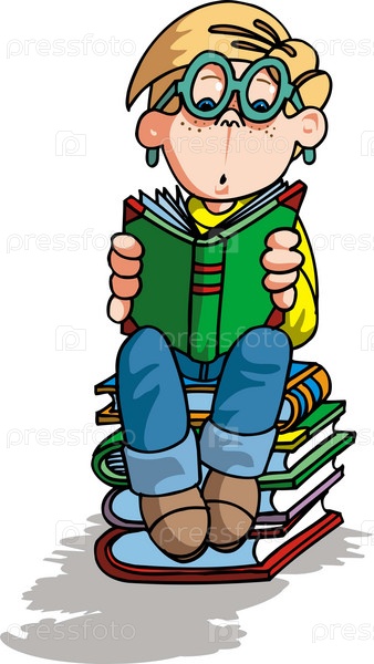 Мальчик с книжкой на белом фоне