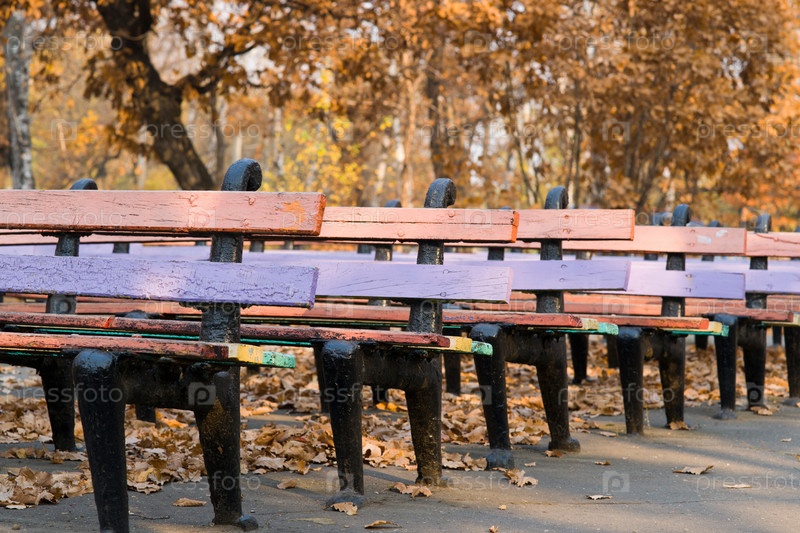 Скамейки в осеннем парке