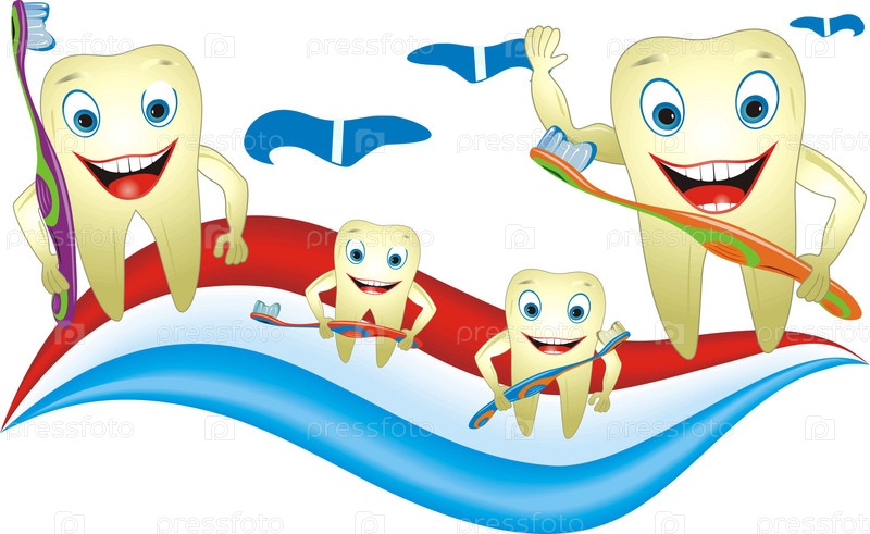 Иллюстрация счастливых и здоровых зубов на белом фоне