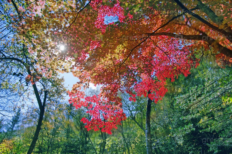 Красивое дерево с красными листьями в лесу