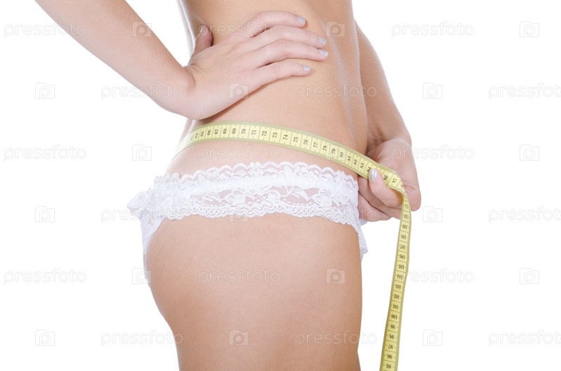 Девушка измеряет талию