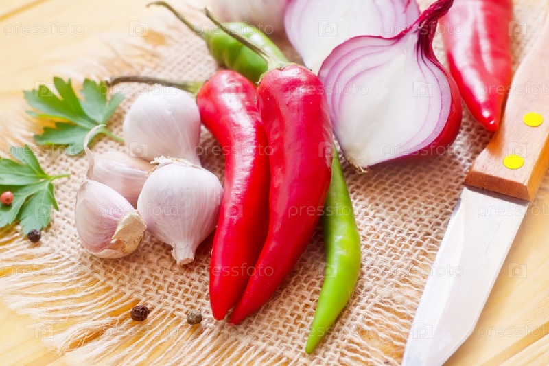 Перец Чили, чеснок и лук