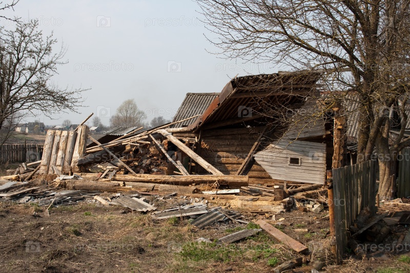 Разрушенный деревянный дом