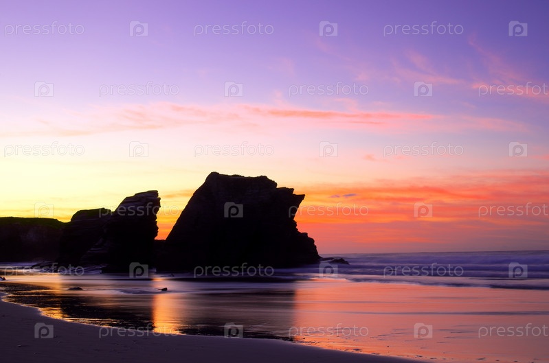 Красивый закат на берегу Атлантического океана, Испания