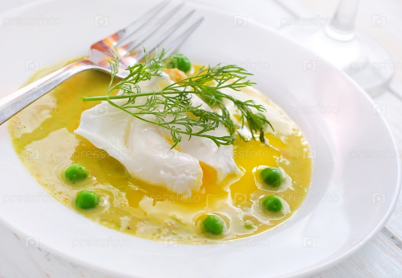 Свежий суп из зеленого горошка и яйца пашот