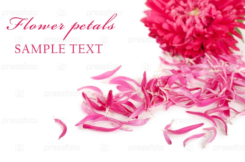 Цветок красной астры с лепестками на белом фоне