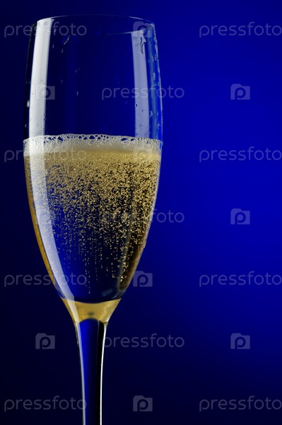 Объект на голубом - бокалы с шампанским вблизи