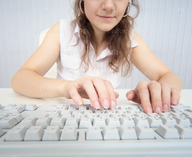Женщина, работающая на компьютерной клавиатуре