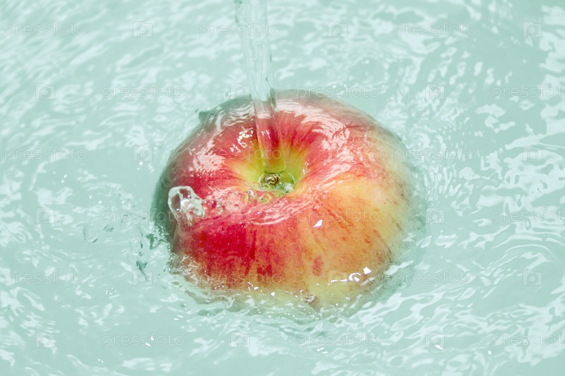 Красное яблоко в воде