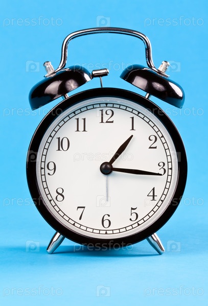 Классический будильник на синем фоне