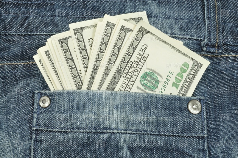 Доллары крупным планом в кармане джинсов