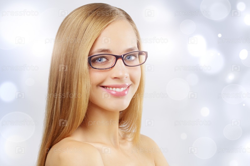 Улыбающаяся молодая женщина в очках крупным планом