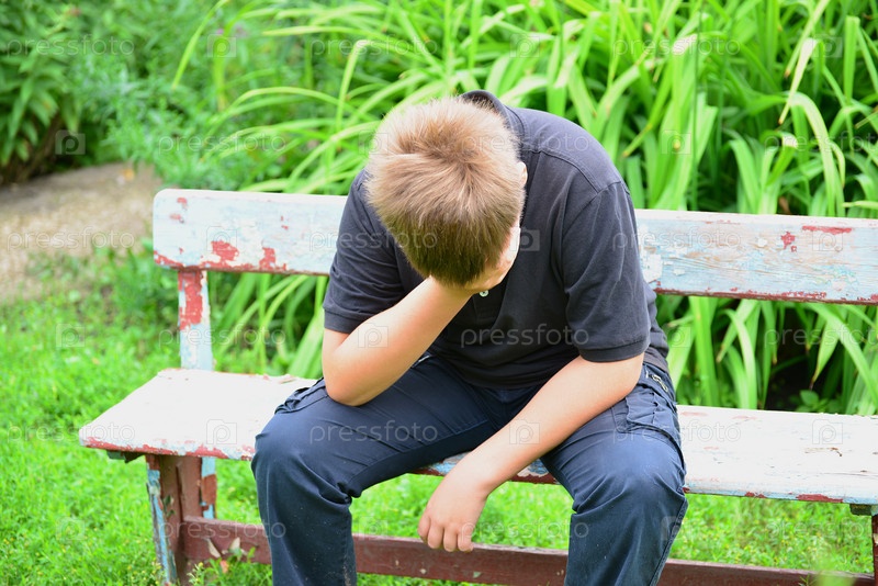 Депрессии подросток, сидя на скамейке