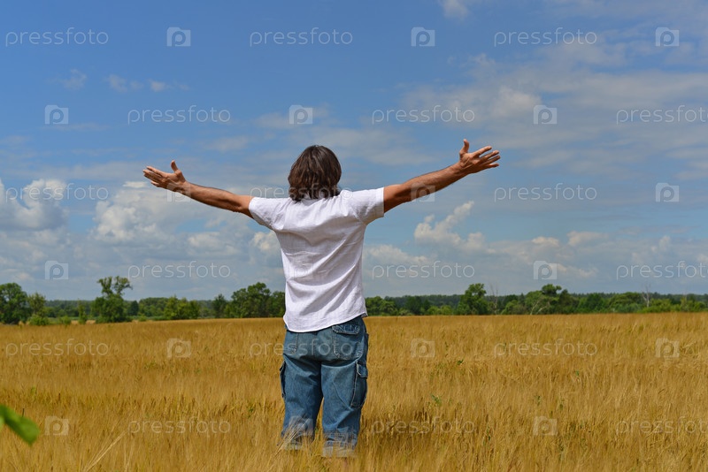 Человек стоит на поле ржи