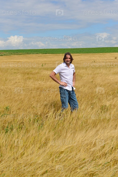 Человек стоит на поле ржи
