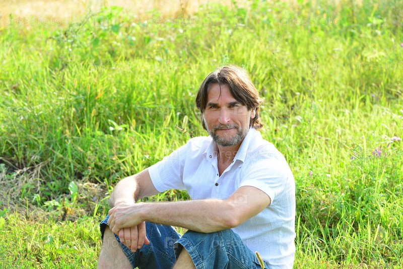 Человек сидит в траве летом