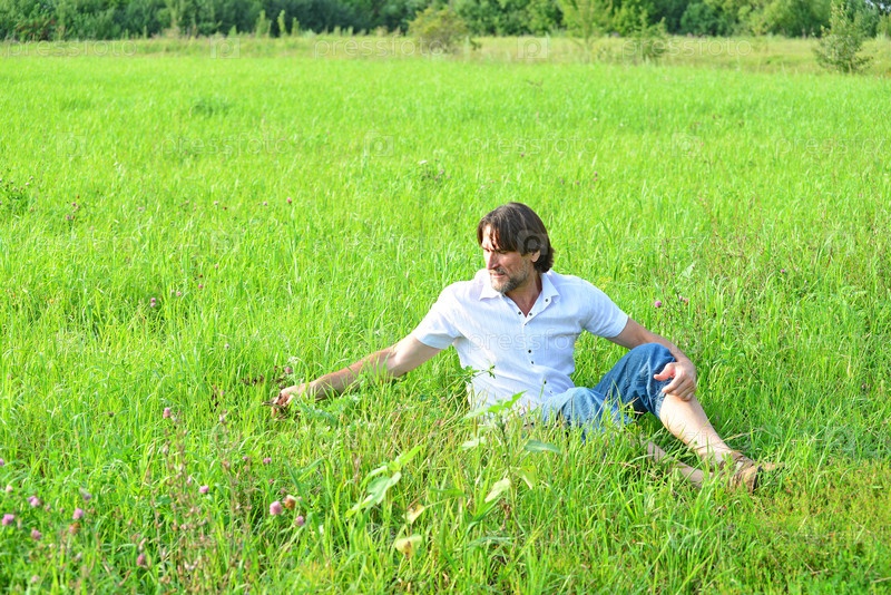 Человек сидит в траве летом