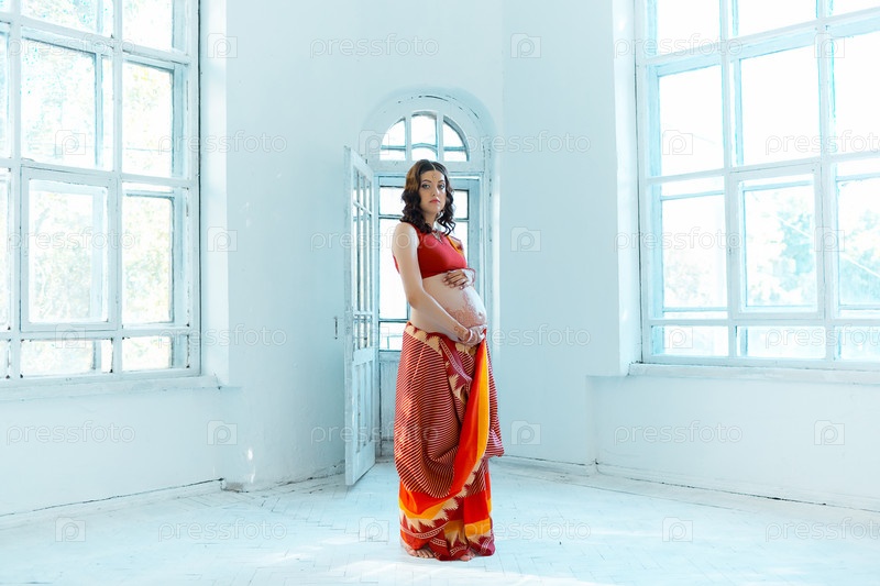 Живот беременной женщины с тату хной