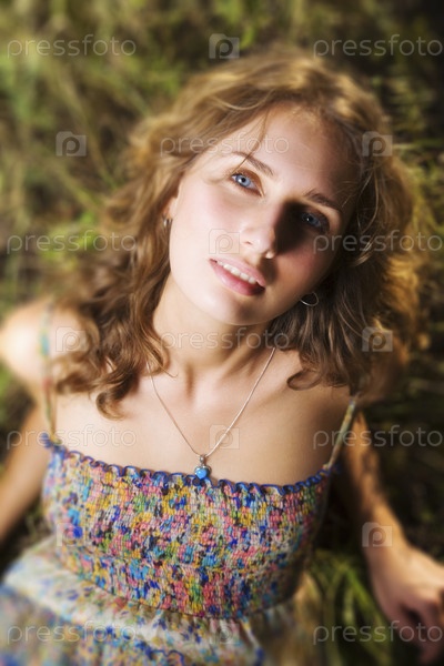 Молодая женщина на лето поле
