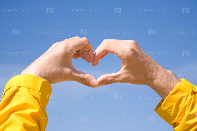 Четкие и простые любовь концепция на голубое небо (фокус на руках выборочный)