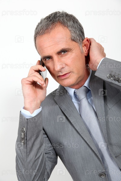 Портрет зрелых бизнесмена на телефоне