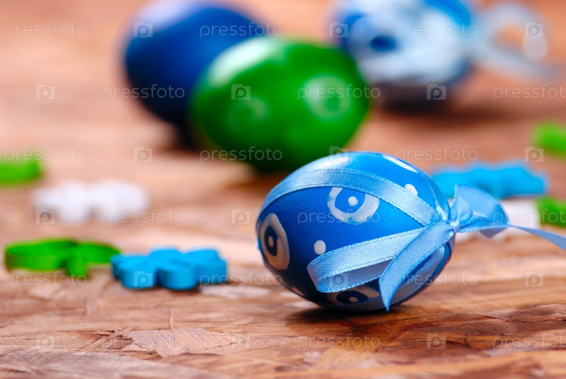 Пасхальные яйца над деревянными фоне