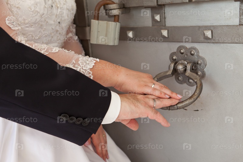 Руки молодоженов крупным планом