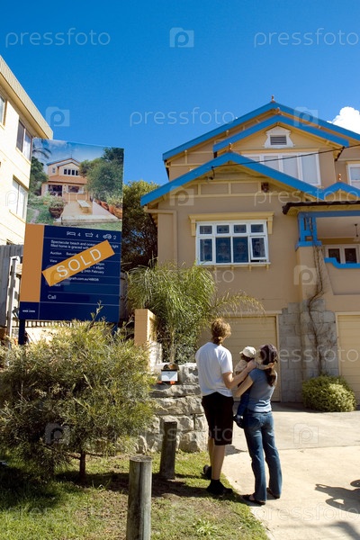 Запасов фотография семьи стоя вне их нового дома
