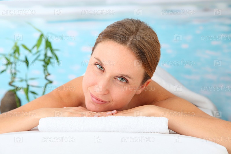 Крупным планом красивая блондинка женщина на кровать Массаж