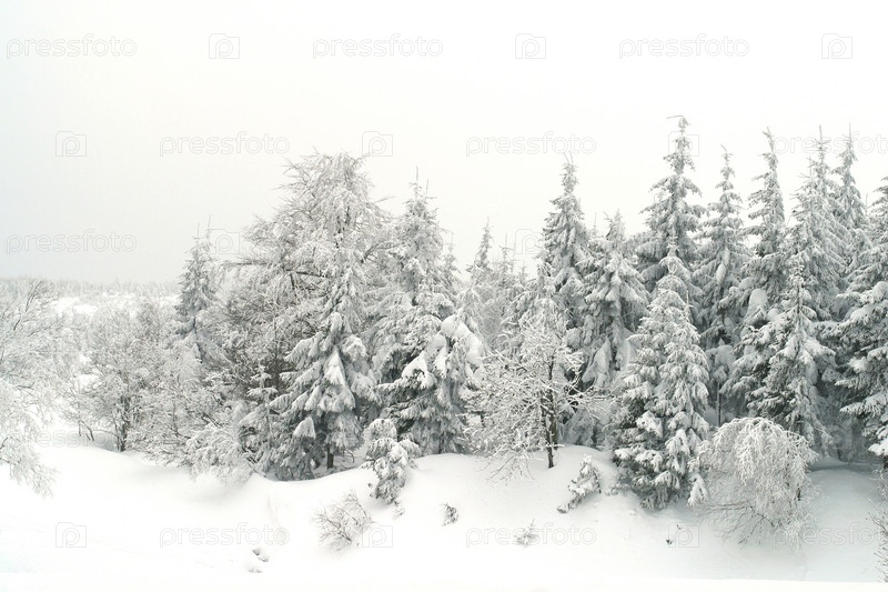 Заснеженные деревья на границе Германии и Чешской Республики