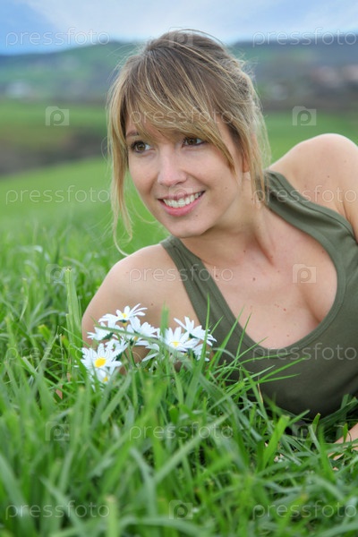 Красивая женщина, устанавливающий зеленое поле