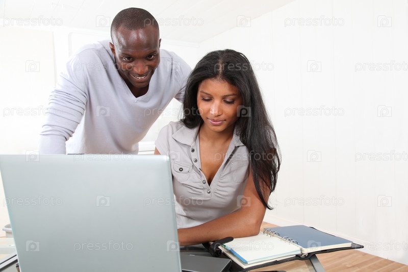Коллеги в офисе с портативного компьютера