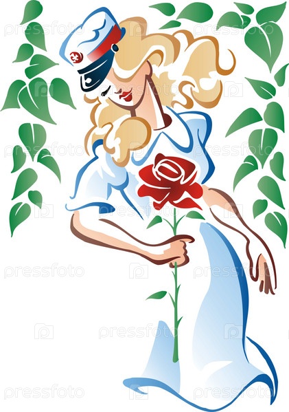 Молодая девушка с розой на белом фоне