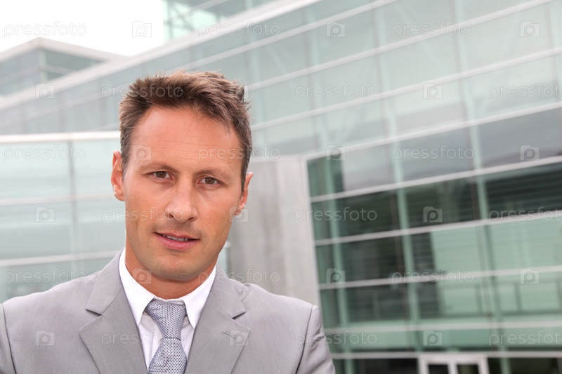 Портрет предпринимателя в сером костюме