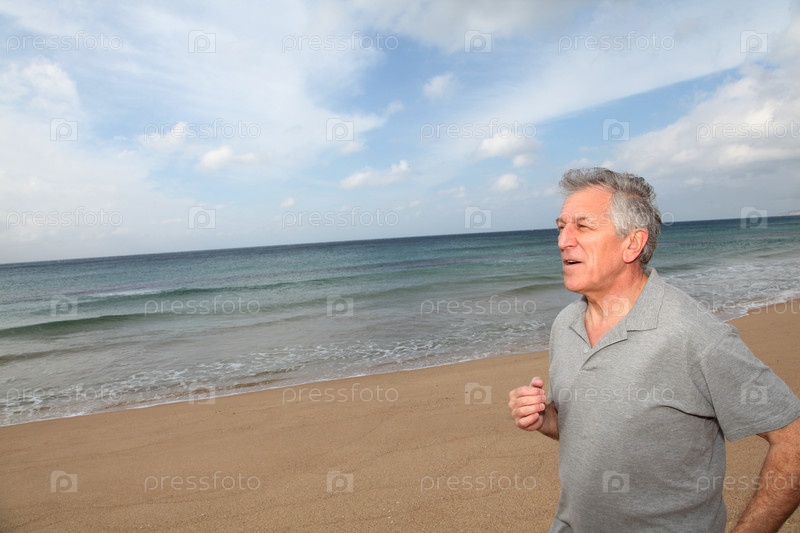 Старший человек работает на пляже