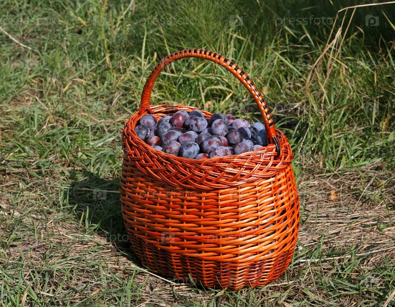 Свежие спелые сливы в корзине