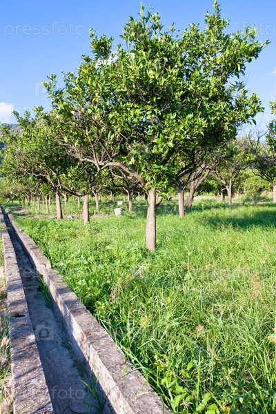 Мандариновый сад и пустой оросительный канал в Сицилии