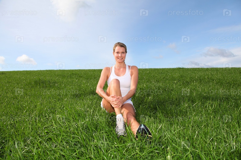 Красивая женщина, делая упражнения фитнес в природе