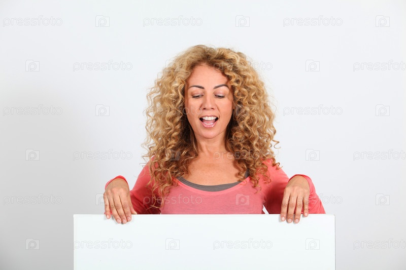 Смешная блондинка женщина Холдинг доска