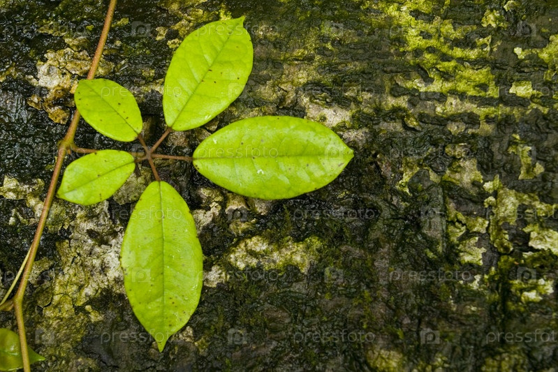 Запасов фотография листа на коре, растущих в дождь Форрест