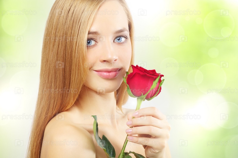 Красивая естественная девушка с красной розой