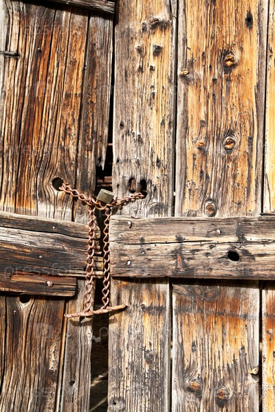 Старые деревянные двери, обеспеченные с цепи замка и железа