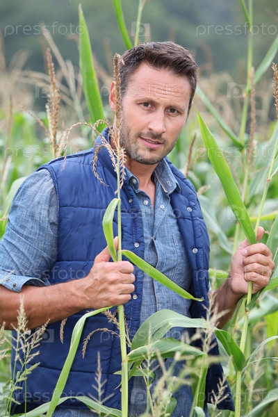 Агроном анализа зерновых в кукурузном поле