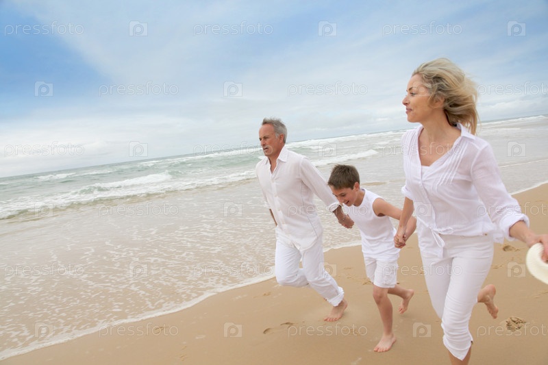 Работает на песчаном пляже семья