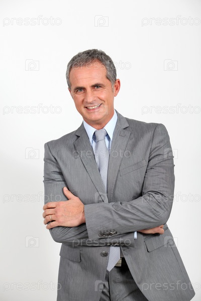 Бизнесмен, стоя на белом фоне