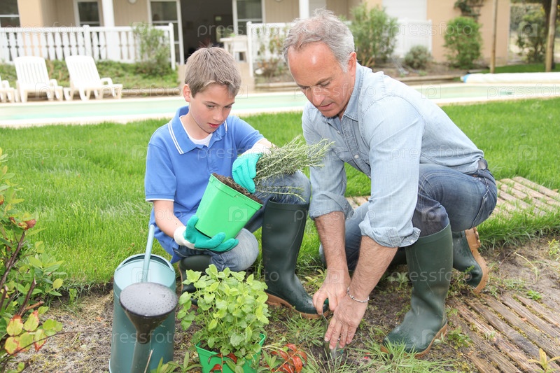 Отец и сын Саженцы цветы в доме Сад