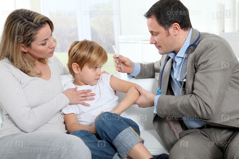 Доктор делает инъекции вакцины для маленького мальчика